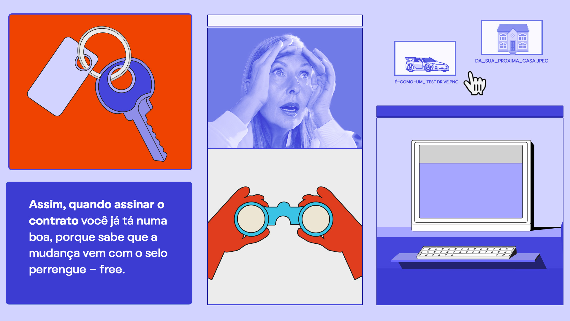 - Concepção da campanha em parceria com o time de designers, desenvolvendo o conceito que conecta o insight de “test-drive para casa” à proposta do QuintoAndar.